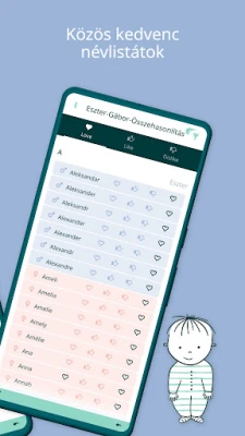 A CharliesNames intelligens rendszere messze túlmutat a puszta névlistákon. Egyedülálló AI-algoritmusa megismeri a preferenciáitokat, és célzottan az ízlésetekhez illő neveket ajánl. A forradalmi partnerfunkcióval pedig azonnal láthatjátok a közös kedvenceket, így a vita helyett a felfedezés öröme kerül előtérbe. Több mint 15 000 nemzetközi név vár rátok, részletes eredetmagyarázatokkal – angol nyelven –, a világ 40 országának toplistáival, akár fiú, lány vagy uniszex kategóriában. Mindez a legegyszerűbb swipelős felülettel, amely pillanatok alatt felfedi a rejtett gyöngyszemeket.