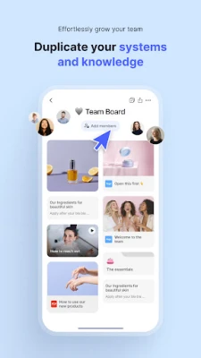 De a Boards nem csupán egyéni használatra készült. Csapatvezetők és csoporttagok számára egyaránt ideális platformot kínál a hatékony együttműködéshez. Oszd meg a legjobb tartalmaidat a kollégáiddal, biztosítva az egységes minőséget és felgyorsítva az értékesítési ciklust. A valós idejű frissítéseknek köszönhetően mindenki azonnal értesül a legújabb termékekről, ármódosításokról vagy promóciókról, így a csapat mindig naprakész marad. Ráadásul a Boards lehetővé teszi a tartalom teljesítményének elemzését is, így optimalizálhatod stratégiádat, és maximalizálhatod az elkötelezettséget. Függetlenül attól, hogy direkt értékesítő, influencer, ingatlanközvetítő vagy ügyfélszolgálati szakember vagy, a Boards támogat téged abban, hogy a legmagasabb szinten teljesíts a telefonodról.