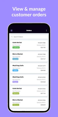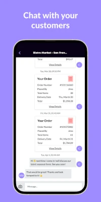 Valós idejű ügyfélkezelés, bárhol is jár. Pillantsa meg rendeléseit egy szempillantás alatt. Tartsa fenn az aktív kapcsolatot partnereivel, és nyújtson kiváló ügyfélszolgálatot közvetlenül telefonjáról vagy tabletjéről, bárhonnan.
