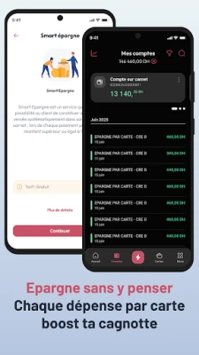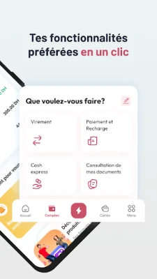 A L'bankalik segítségével mostantól valós időben követheti nyomon minden számlája (folyószámla, takarékszámla) egyenlegét és műveleteit, valamint azonnal hozzáférhet banki dokumentumaihoz, mint például kivonatokhoz és csekkek képeihez. Könnyedén konfigurálhatja és kezelheti kártyáit, beállíthatja a limiteket, lekérheti a PIN-kódokat, vagy akár azonnal letilthatja azokat. Az átutalások kezelése gyerekjáték, legyen szó akár L'bankalik, Attijariwafa bank, vagy más számlákra történő utalásokról. Kényelmesen fizetheti számláit, feltöltheti telefonját, és élvezheti a „Cash Express Automatic" előnyeit, mely azonnali, kártya nélküli készpénzfelvételt tesz lehetővé az Attijariwafa bank bankautomatáinál egy egyszerű kód használatával.