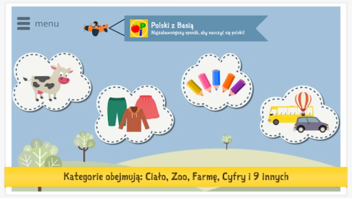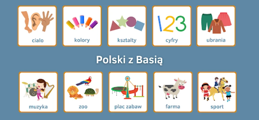 A Polski z Basią a játékos tanulást helyezi előtérbe, különféle kihívásokkal, mint például memóriajátékok, csúszkás puzzle-ök, formabontó fejtörők és izgalmas kvízek. A szavak logikus kategóriákba rendezve segítik a fokozatos elsajátítást: a Farm, Ruhák, Színek, Közlekedés, Számok, Formák, Játszótér, Ételek és italok, Állatkert, Otthon, Test, Zene és Sport témák mind a gyermekközeli környezetből merítenek. A profi grafikusok által készített képek és a szakértő narrátor meleg, barátságos hangja nemcsak segít a helyes kiejtés elsajátításában és a szavak leírásának megtanulásában, hanem a nyelvi alapkészségek stabil alapjait is lefekteti, felkészítve a gyermekeket az óvodai és iskolai kihívásokra.