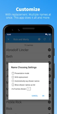A Random Name Picker nem csupán funkcionális, hanem a felhasználói élményre is nagy hangsúlyt fektet. A testreszabható prezentációs módokkal izgalmasabbá teheti a húzásokat. Nem szeretne gombokat nyomkodni? Csak rázza meg az eszközét, és a sorsolás máris megtörténik! Sőt, ha a hangját pihentetné, az applikáció fel is olvassa Önnek a kiválasztott neveket. Az intuitív, letisztult felület gondoskodik a könnyű kezelhetőségről, támogatva mind a fekvő, mind az álló tájolást. Az úgynevezett "backported Material Design" technológiának köszönhetően pedig az interfész régi Android eszközökön is elegánsan és reszponzívan működik, garantálva a zökkenőmentes használatot mindenki számára.